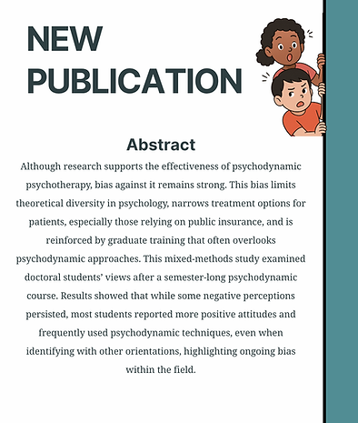 Kors, S., *Levinson, B., & Sacks, J. (2025) Overcoming bias in graduate student perceptions of psychodynamic therapy. Accepted to Psychoanalytic Psychology.